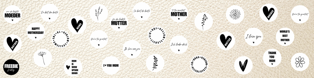 Voor Moederdag maakte ik een grote collectie stickers die je kunt gebruiken op cadeautjes, kaartjes, enveloppen etc.