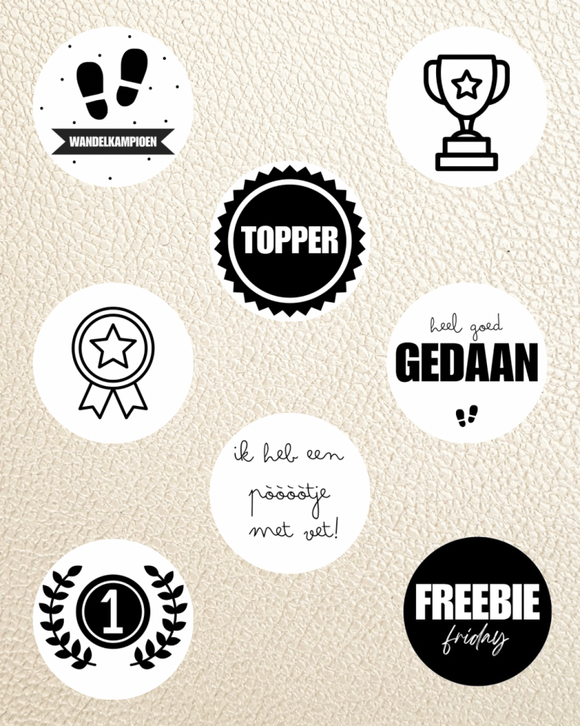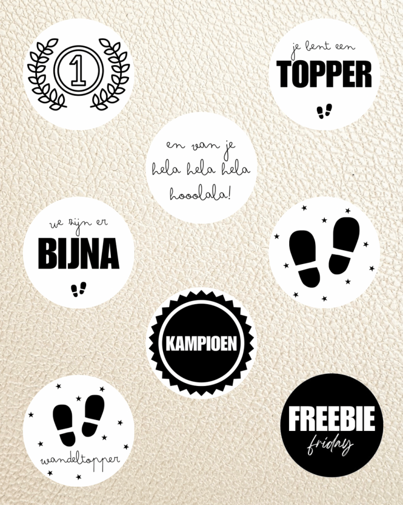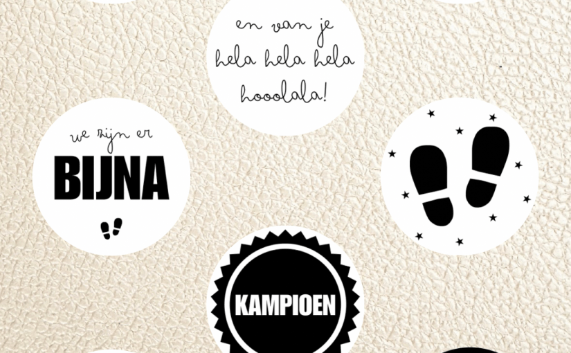 Ik maakte daarom de AVONDVIERDAAGSE COLLECTIE. Een set van 14 stickers die je kunt printen met een thermische printer of een gewone printer. Leuk om op een snoepzak of cadeautje te plakken.