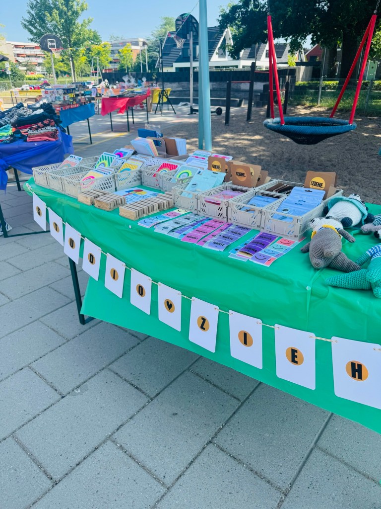 Maak je eigen slinger met stickers! Simpel, snel én persoonlijk. Voor de Zomermarkt van de school van mijn zoontjes maakte ik deze variant voor aan mijn kraam en ik laat je in deze blog zien hoe.