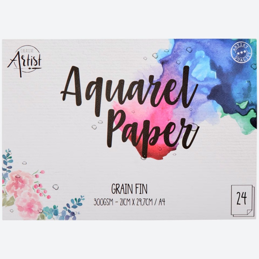 Bij Action kocht ik een blok wit aquarelpapier. Dit is 300 grams papier en is lekker stevig. Een blok kost €1,99 en bestaat uit 20 vellen.