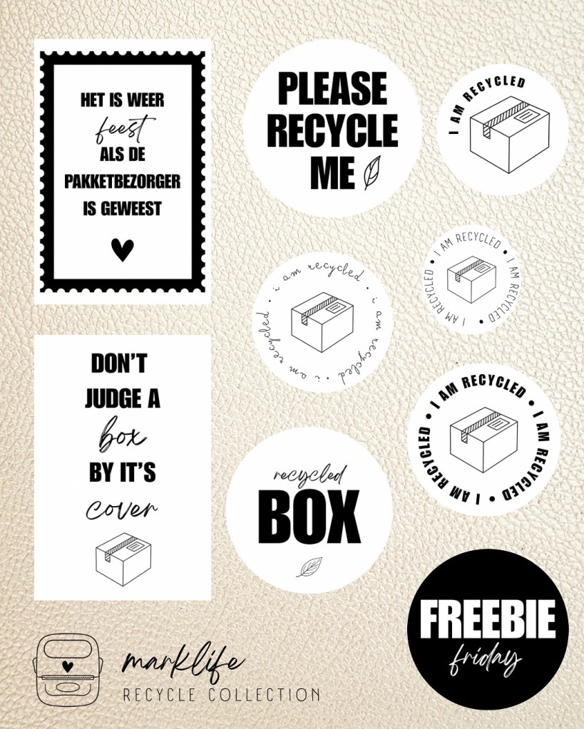 Zo fijn al die creatievelingen die meedenken voor een nieuwe collectie! Ik vroeg in mijn Instagramgroep DE STICKERCLUB 🖤 om ideeën en daaruit is de RECYCLE COLLECTION ontstaan. @justnyma kwam met het idee om stickers te maken voor herbruikbare pakketjes. Dat vond ik zo’n tof idee!