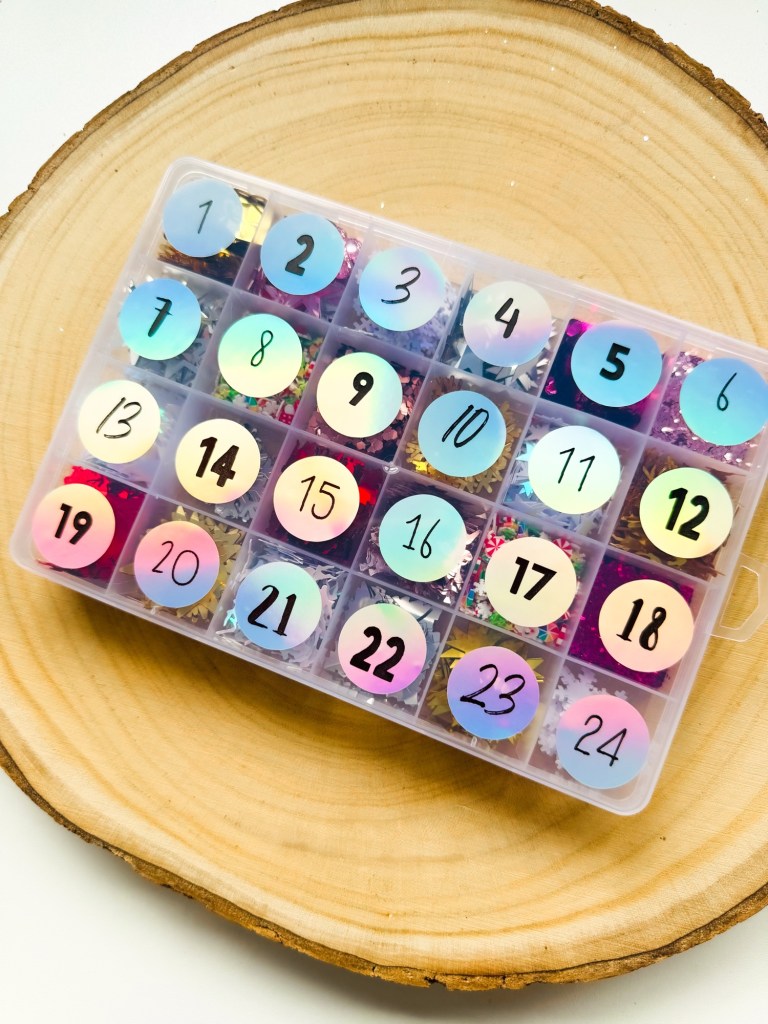Adventskalenders: ik hou ervan! 😍 En daarom heb ik voor deze week een collectie Adventsstickers gemaakt 🎅🏻 Mijn creatieve vriendinnen @itblommefamke en @meteenvleugjeliefde verraste ik allebei met deze zelfgemaakte Adventskalender. Ik kocht bij Tedi deze opbergboxjes met 24 vakjes. Deze vulde ik met allerlei soorten glitters. Adventsstickers erop en klaar is je Adventskalender!