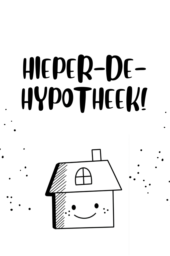 Woordspelingen: ik hou ervan! Ik maakte deze sticker die je kunt gebruiken voor als iemand een huis heeft gekocht. De tekening van het huis maakte ik zelf.