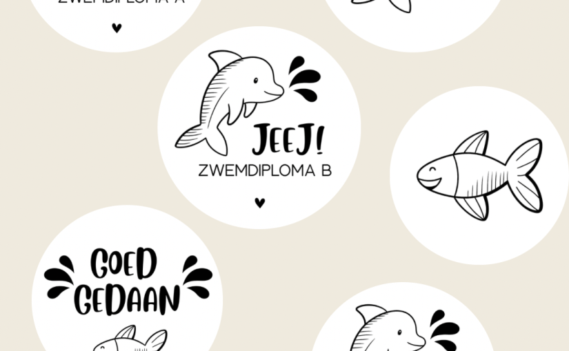 Op mijn Instagramkanaal DE STICKERCLUB 🖤 had ik een polletje uitgezet met de vraag welk thema gewenst is. Met stip op 1: kleine mijlpalen. Dus ik ben weer aan het tekenen gegaan afgelopen week en ben met het thema zwemdiploma’s begonnen.
